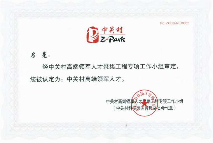 这一次房亮博士获得2019年度中关村高端领军人才的殊荣,不仅是对房亮博士创业领军能力的认可,也是对国科星空网·网站登录官网入口-星空(中国)未来发展的认可。